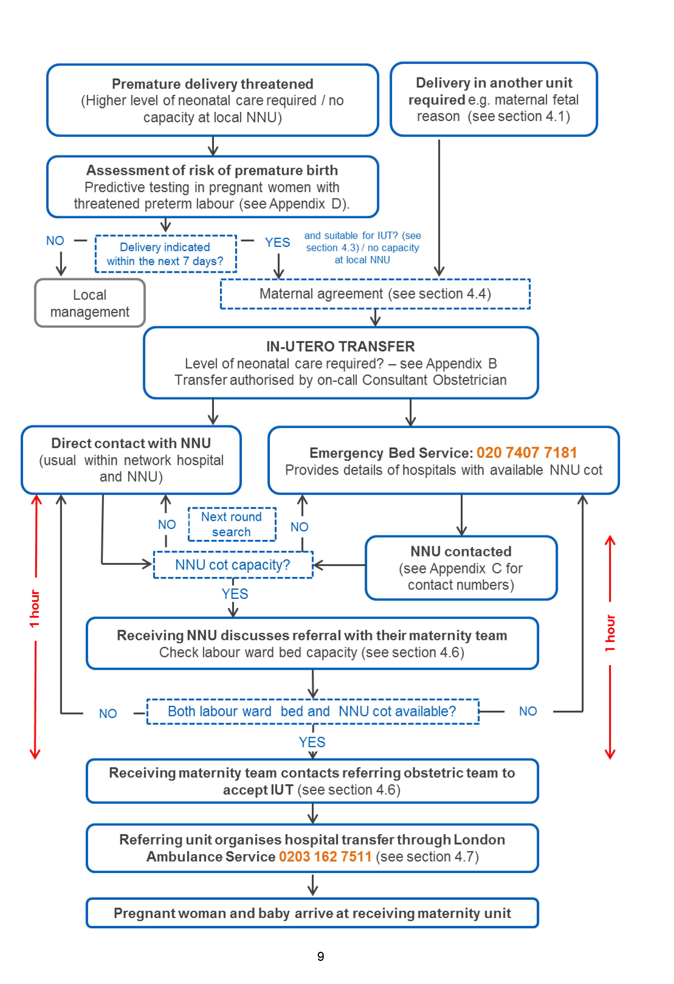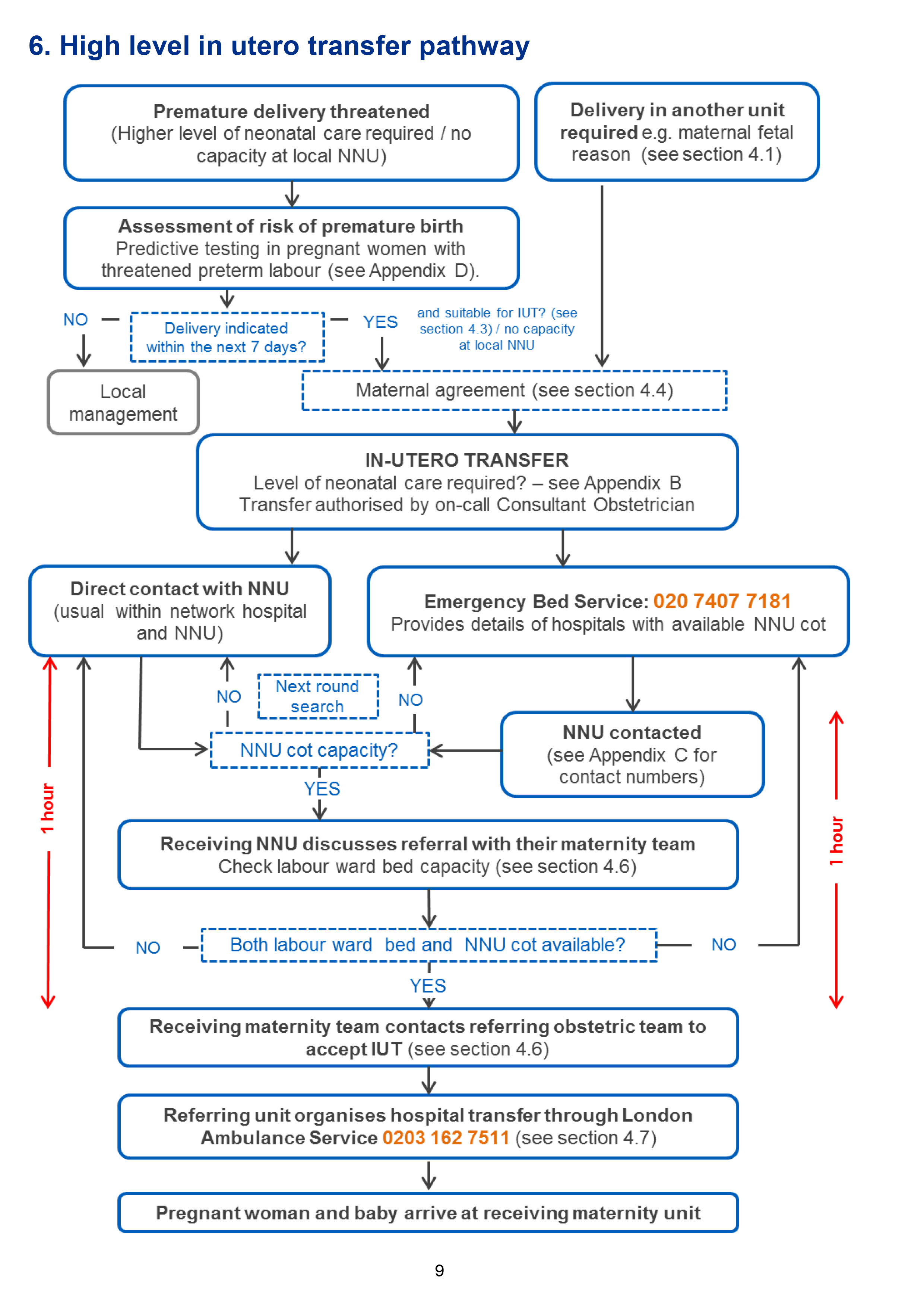 The guideline has been produced by the pan-London In Utero Transfer working party hosted, by the London Maternity Clinical Network following consultations with the Emergency Bed Service (EBS) at the London Ambulance Service (LAS). It is intended to build upon the British Association of Perinatal Medicine (BAPM) 2008 document on management of acute in utero transfers.